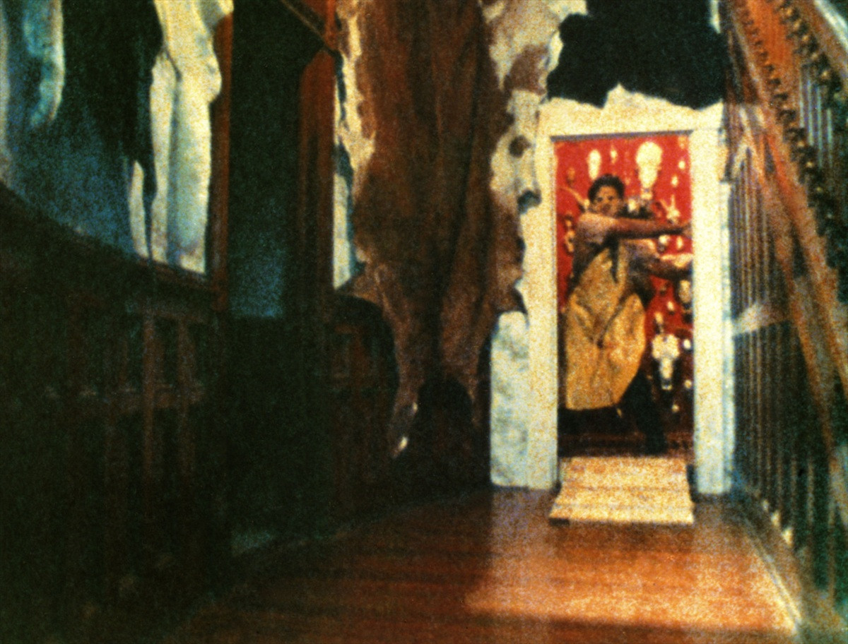 ホラー映画の肝となるのは安穏とした日常から、何でもありの恐怖が潜む異世界へと観客を引き込む手管だ。『悪魔のいけにえ』では田舎の農地に建つ白壁の一軒家を訪ねた青年が、玄関先で薄暗い廊下の奥にぽっかりと空いた異様な赤い空間を目撃。そこから聞こえる奇妙な物音に誘われるように邸内に足を踏み入れ、最初の犠牲者になる。