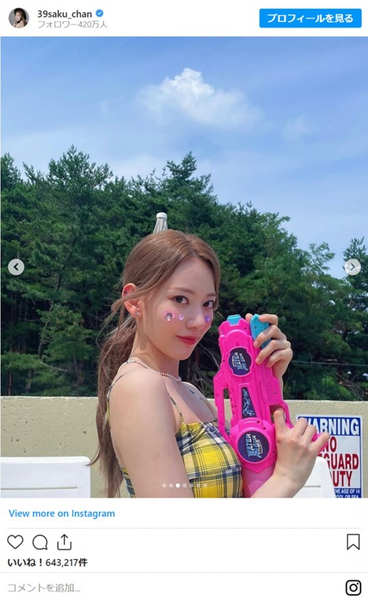 宮脇咲良、キュートな夏満喫ショットに反響 「かわいすぎる」「楽しそう」