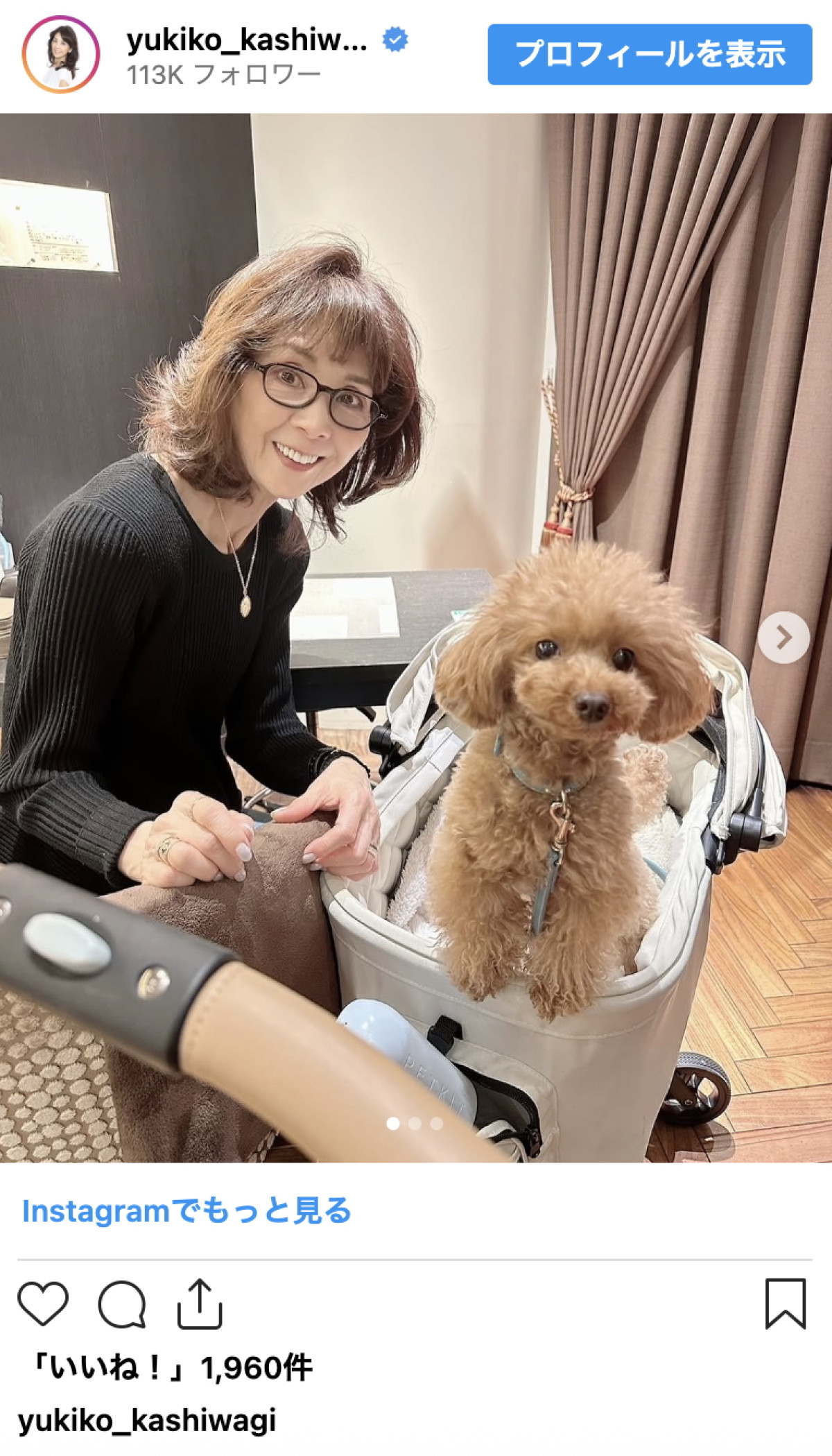 柏木由紀子77歳、愛犬と癒やしのひととき「幸せの時間」にファンもほっこり