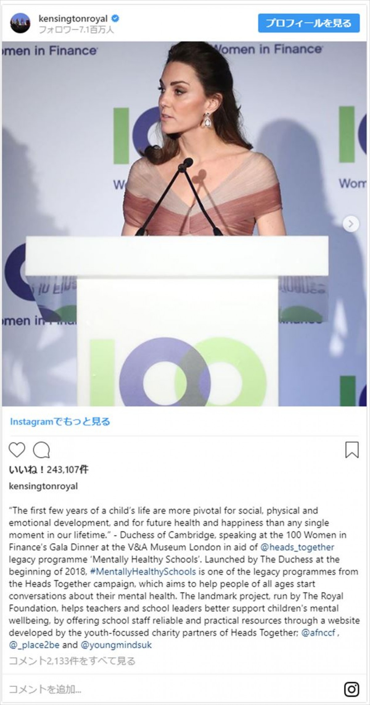 ※「ケンジントン宮殿」インスタグラム