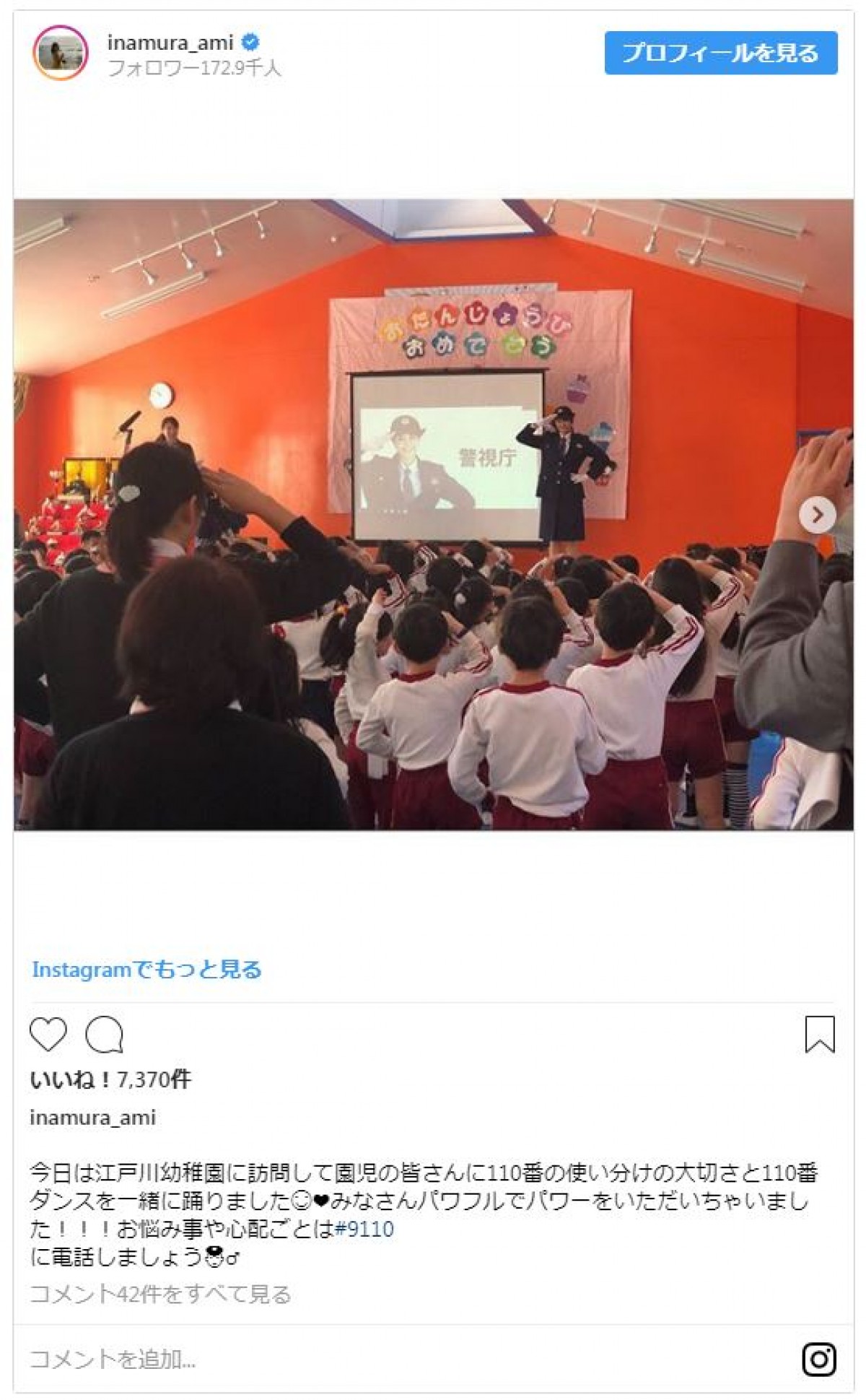 稲村亜美、きりっとした警察官姿にファン「逮捕されたい」