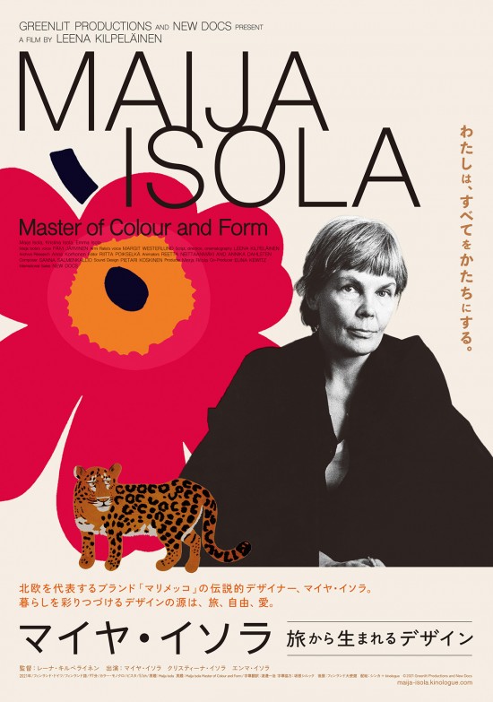 2021年に70周年を迎えた北欧を代表するブランド“マリメッコ”で多くのデザインを手がけた、マイヤ・イソラを追ったドキュメンタリー。旅を愛したマイヤが旅先から宛てた手紙や日記、娘のクリスティーナによる証言、アーカイブ写真・映像とアニメーションを駆使して伝説のデザイナーの人生を紐解いていく。監督はレーナ・キルペライネン。
