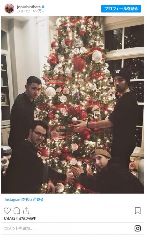ジョナス・ブラザーズは、「#tbt(Throwback Thursday)」として、大きなツリーの前でポーズを取る、ケヴィン、ジョー、ニック、そして末っ子のフランキーの思い出写真をインスタグラムで公開。ツリーは兄弟の背丈よりもずっと大きく、インスタの写真にも収まりきっていないほど。