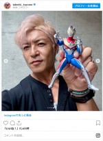 タレントのつるの剛士が15日にインスタグラムを更新。自身が主演した『ウルトラマンダイナ』(1997年)のお宝グッズやそれらに囲まれて喜ぶ息子の写真などを公開した。