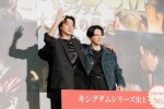 俳優の山崎賢人(※「崎」は正式には「たつさき」)と吉沢亮が15日、都内で開催された映画『キングダム 大将軍の帰還』大ヒット御礼舞台あいさつに出席。吉沢が、山崎の乗馬での撮影シーンを振り返った。