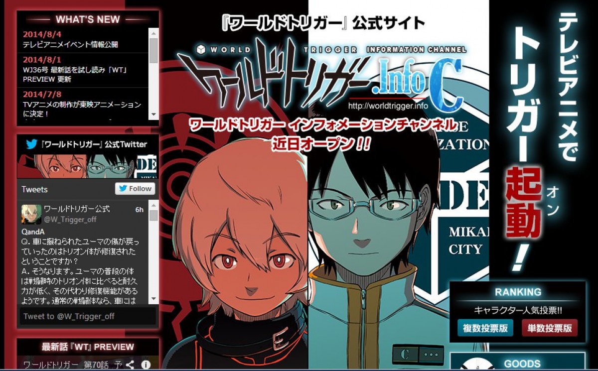 テレビアニメ化が発表され、注目を集めていた人気マンガ『ワールドトリガー』が、テレビ朝日系列で放送されることが決定した。