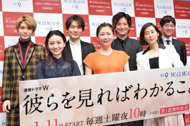 女優の中山美穂が10日、都内で行われた主演ドラマ『連続ドラマW 彼らを見ればわかること』(WOWOW/1月11日スタート)の第1話完成披露試写会&舞台あいさつに、共演の木村多江、大島優子、高橋優斗(HiHi Jets/ジャニーズJr.)、上地雄輔、長野博、深川栄洋監督らと共に出席した。