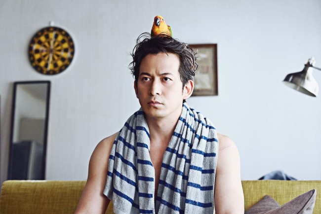 V6の岡田准一が主演を務める映画『ザ・ファブル 殺さない殺し屋』より、岡田演じる主人公ファブルが裸になって頭にインコを載せているシュールな場面写真が解禁された。