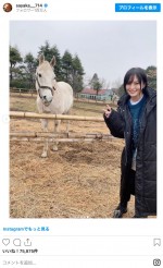 最新シングルのリリースを8日後に控えた16日に山本が投稿したのは『ドラマチックに乾杯』MVからの複数のオフショット。ニットを着た山本がベッドに横たわって笑顔を見せるカットをはじめ、カメラを構える姿や牧場の動物の側でピースサインをする様子が収められている。
