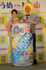 『氷結ストロング』から、宮崎産の日向夏果汁を使用した期間限定商品「宮崎産日向夏」が5月27日に発売され、貴乃花部屋女将の花田景子と内山信二が出席して記者…