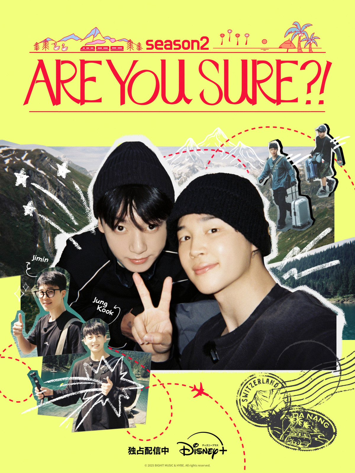BTSのジミンとジョングクの予想外な2人旅『Are You Sure?!』が帰ってきた! ファン待望の新シーズンが12月3日(水)よりディズニープラスにて独占配信中(全8話、毎週水曜2話ずつ配信)だ。シーズン1は入隊前の思い出を残すためにアメリカから済州島、北海道の旅へ。そして、除隊してから1週間後に出発となったシーズン2では一体どこへ行くのか? なんとも2人らしい飾らない自由気ままな旅となった“BTSユニット初”のトラベルバラエティーの見どころをたっぷりと紹介する。