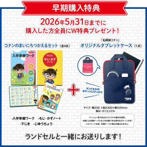 『名探偵コナン』ランドセルが登場! 犯人追跡メガネの金具などが付いた全6色を展開 アイテム 2026年1月30日 20:00 ポスト シェア 「名探偵コナンオリジナルランドセル produced by 名探偵コナンゼミ」(各7万6780円) ※価格は税込み (C)青山剛昌/小学館・読売テレビ・TMS 1996 テレビアニメ『名探偵コナン』の世界観をデザインした「名探偵コナンオリジナルランドセル produced by 名探偵コナンゼミ」が、1月23日(金)から、2027年度入学予定の子… 続きを読む この記事の写真を見る 欲しい 名探偵コナン バッグ ファッション 少年サンデー アニメ アイテム