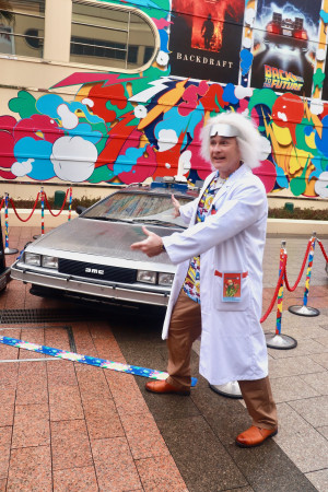 ユニバーサル・スタジオ・ジャパンに10年ぶりに復活した『バック・トゥ・ザ・フューチャー』のタイムマシン&ドク・ブラウン博士 「ユニバーサル・カーズ・アンド・スターズ・コレクション」の様子 クランクイン!