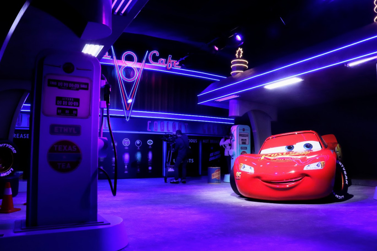 さらに足を進めると、何やら軽快な音楽が聞こえてきた。続いては、ライトニング・マックィーンに出会える『カーズ』のお部屋だ。ここでは、フローのV8カフェがあるラジエーター・スプリングスの街並みを体験しながら、マックィーンとの写真撮影が楽しめる。時折聞こえてくるエンジン音がたまらず、聞くたびに鼓動が高鳴った。
